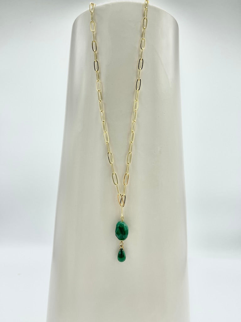 14K plated chain adorned with a captivating piece of Malachite